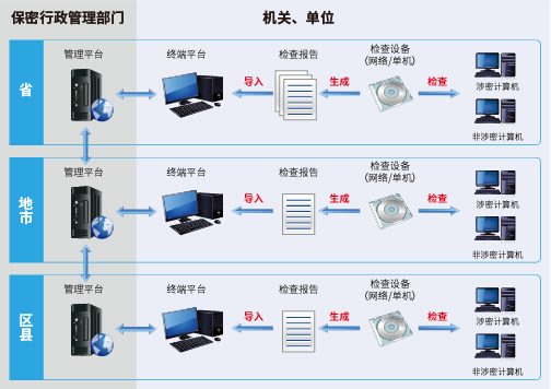 保密自查自评综合管理平台可形成全省范围内的多级联动部署。支持分级数据实时查看等功能,下级单位也可层层上报数据,形成全网数据汇总。